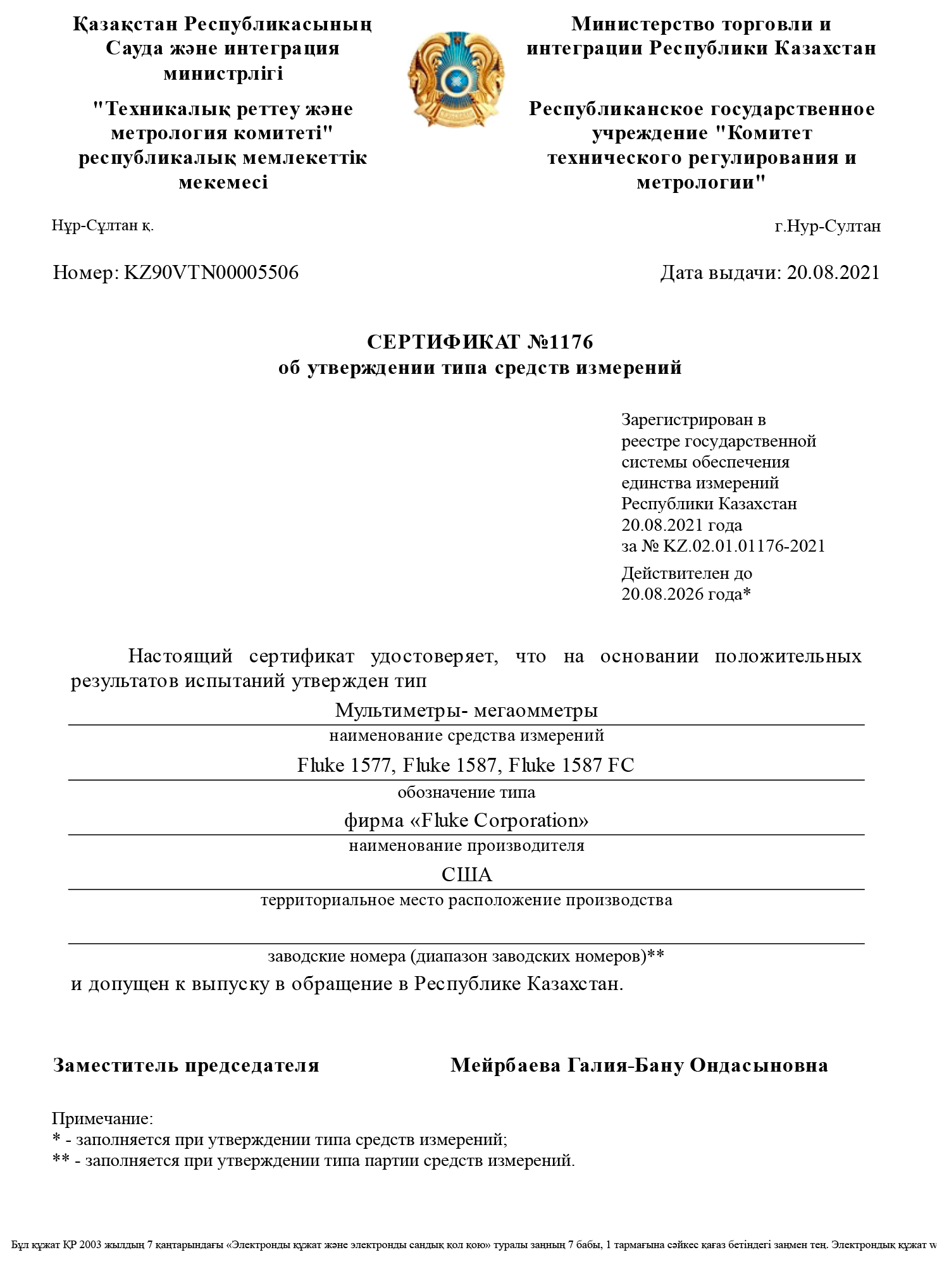 Внесение в реестр СИ РК оборудования: Мультиметры-мегаомметры Fluke 1577, Fluke 1587, Fluke 1587 FC
