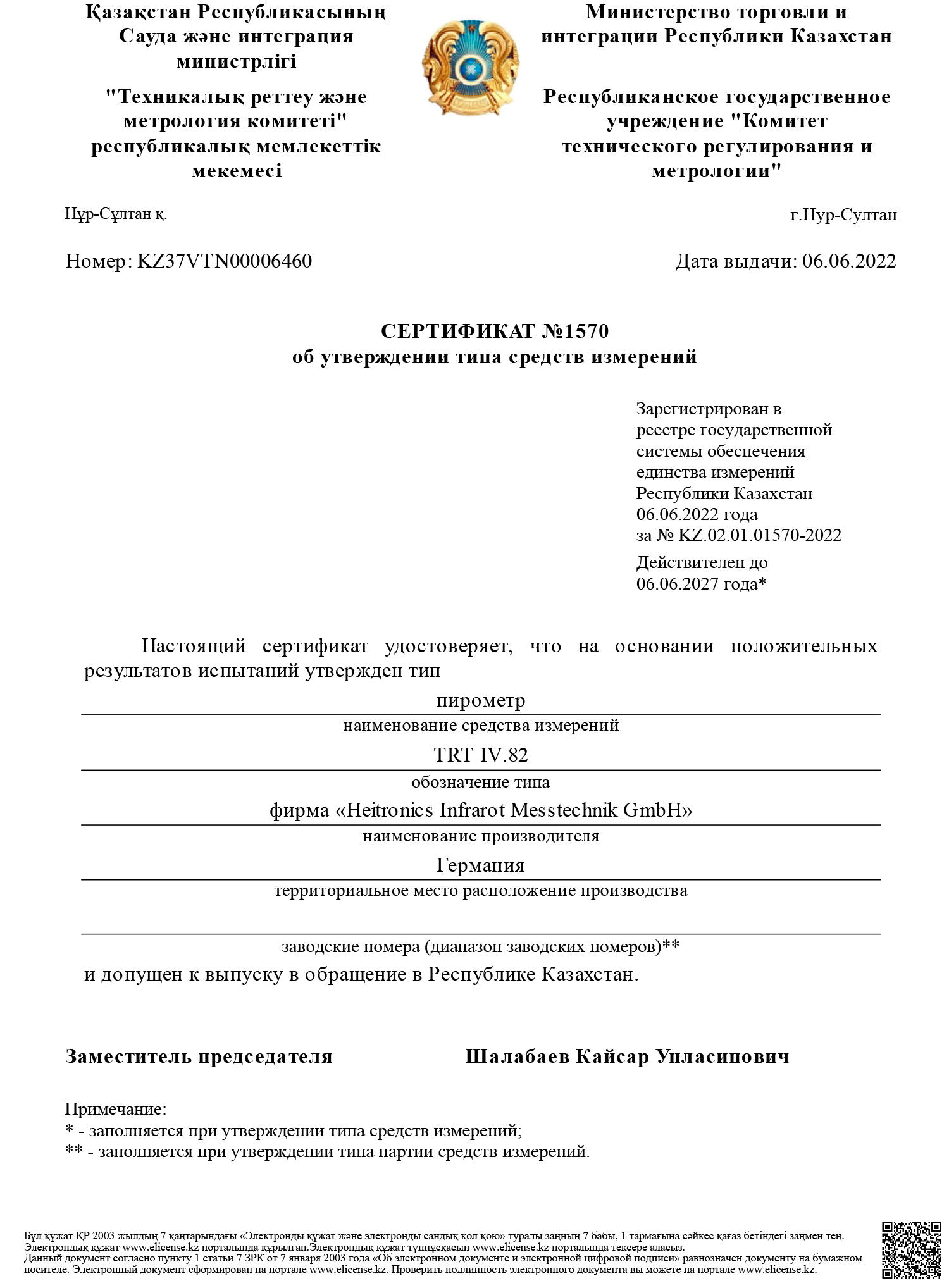 Внесение в реестр СИ РК оборудования: Пирометры TRT IV.82