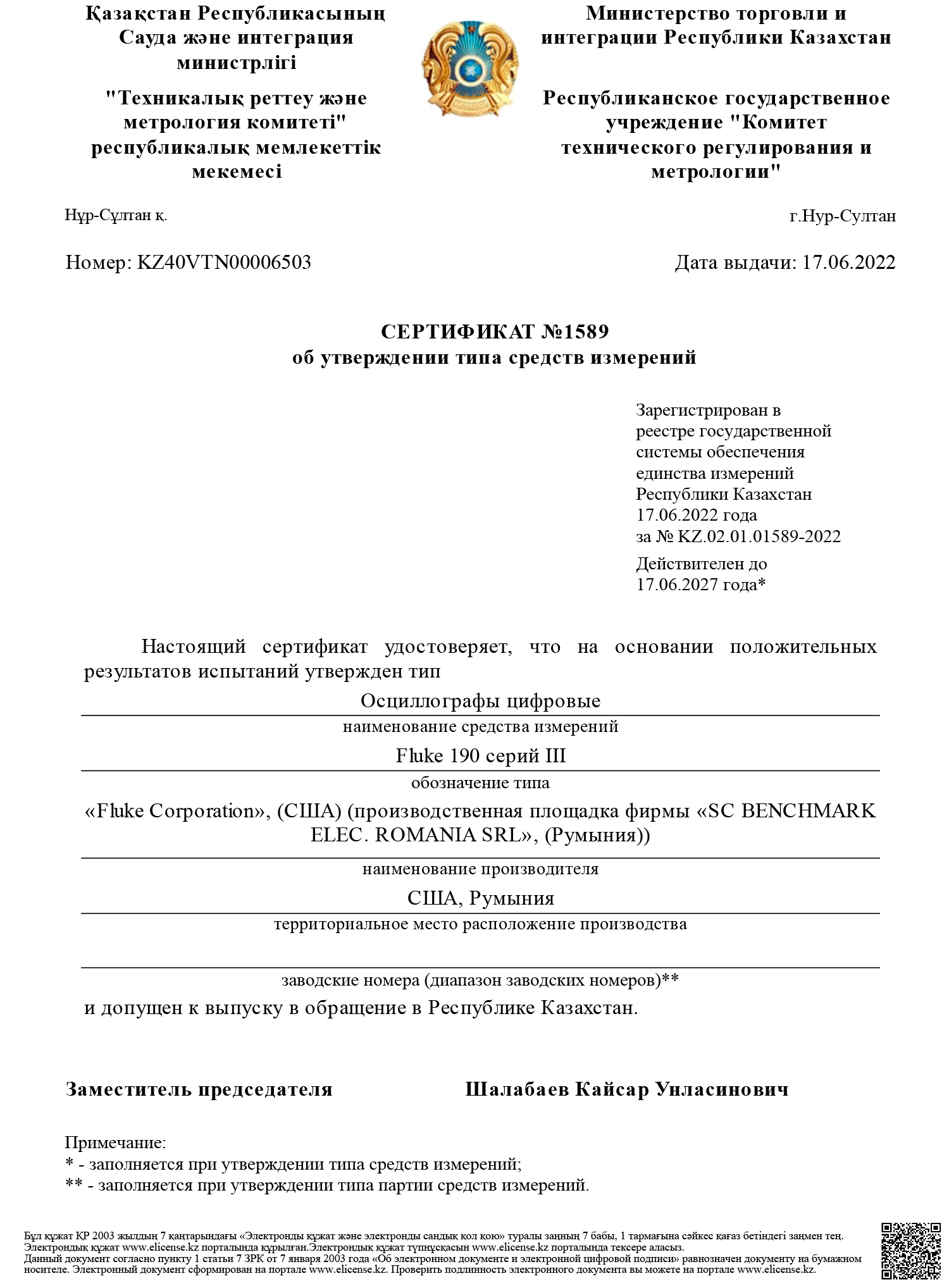 Внесение в реестр СИ РК оборудования: Осциллографы цифровые Fluke 190 серий III