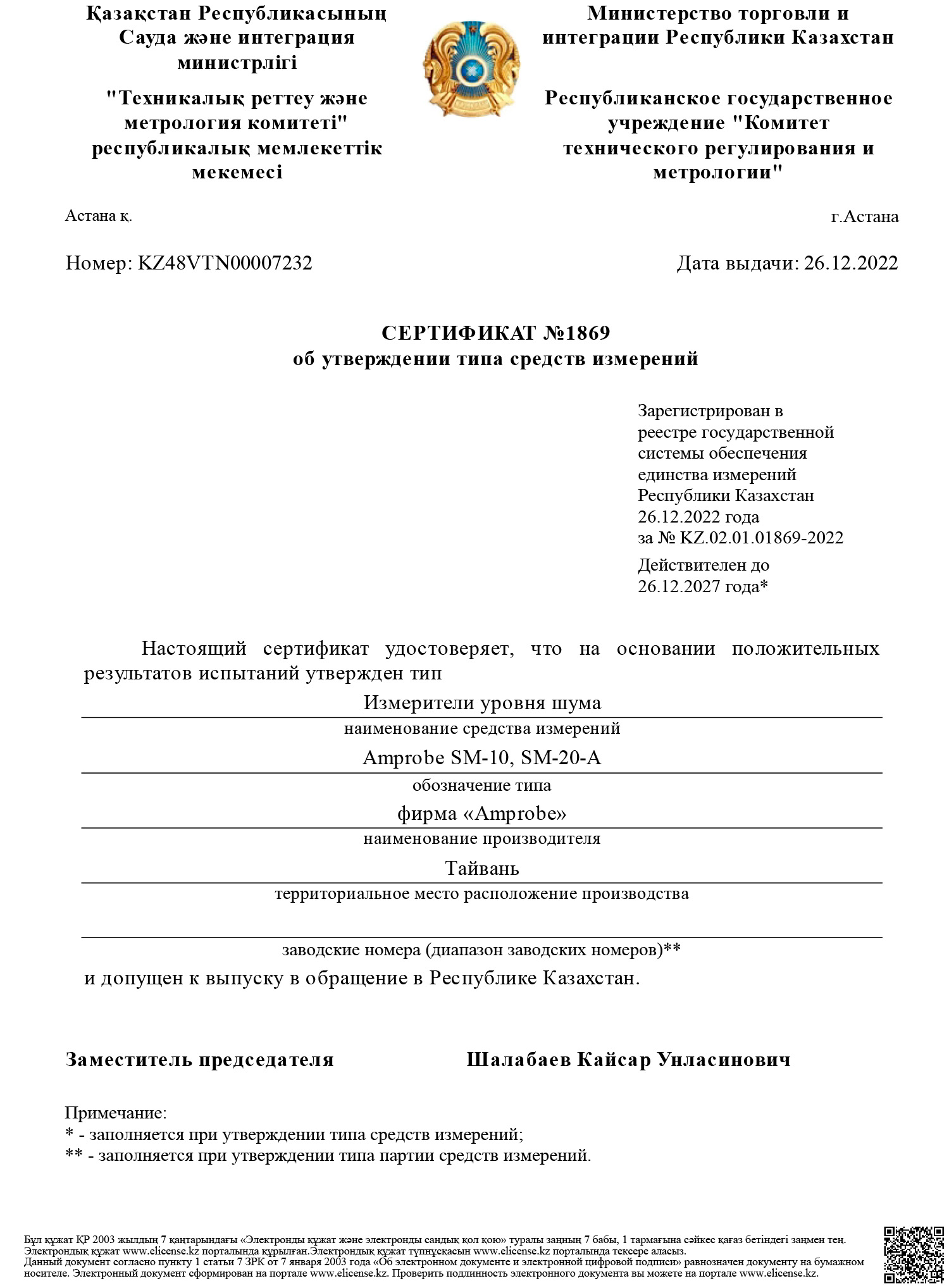 Внесение в реестр СИ РК оборудования: Измерители уровня шума (шумомеры) SM-10, SM-20-A