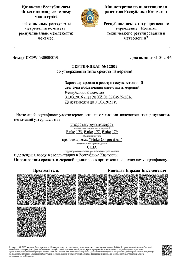 ТОО «ЛинкМастер Казахстан», официальный поставщик компании Fluke Corporation на территории Республики Казахстан, рад сообщить о внесении в Реестр ГСИ - Цифровых мультиметров Fluke 175, Fluke 177, Fluke 179 (сертификат № 12809). Поверку данного оборудования Вы сможете получить сразу при покупке СИ, срок проведения 3-4 рабочих дня. Данные приборы обладают возможностями, необходимыми для обнаружения большинства проблем в электрических и электромеханических системах, а также в системах обогрева и вентиляции. Приборы просты и удобны в использовании. Все мультиметры измереют истинные среднеквадратические значения, обладают расширенным набором измерительных функций, а также соответствуют последним стандартам безопасности.