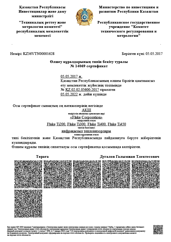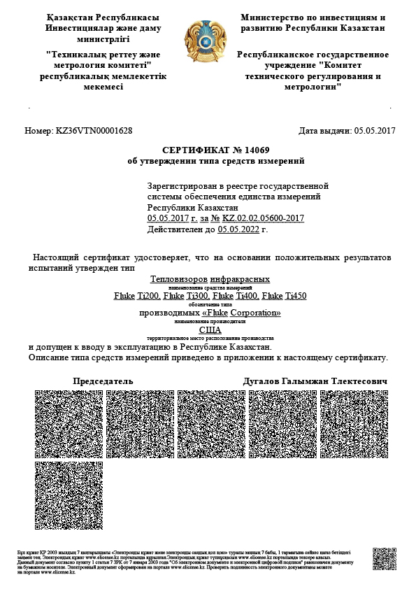 Тепловизоры Fluke Ti200, Fluke Ti300, Fluke Ti400, Fluke Ti450 - в Реестре ГСИ РК