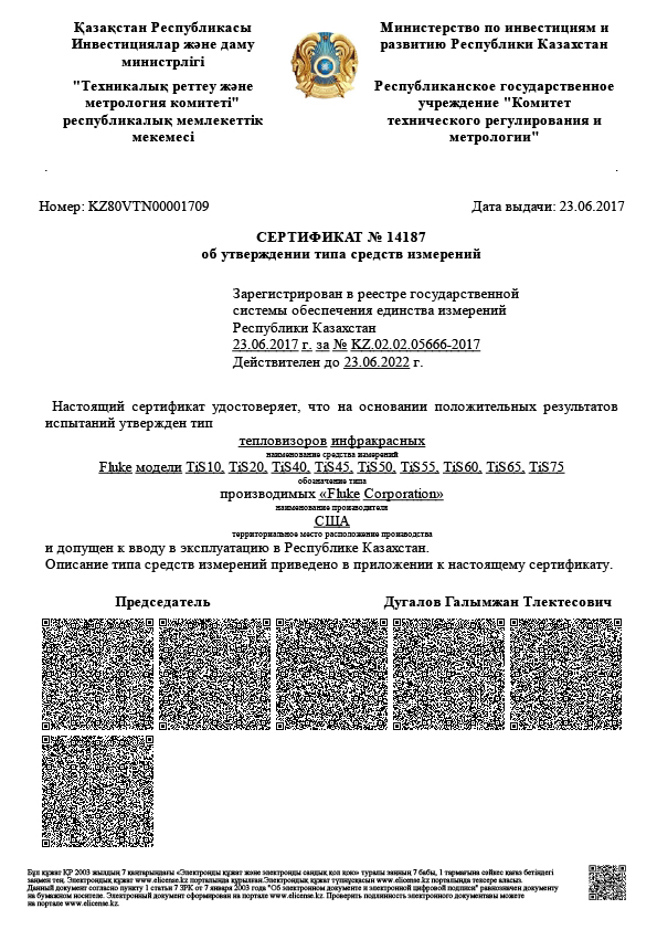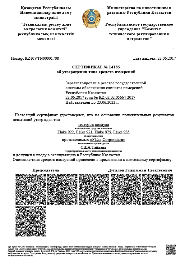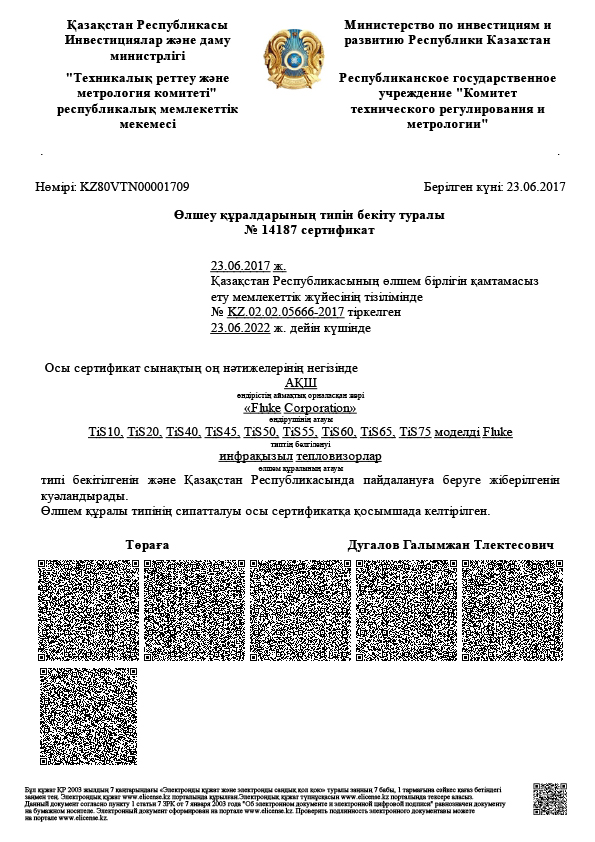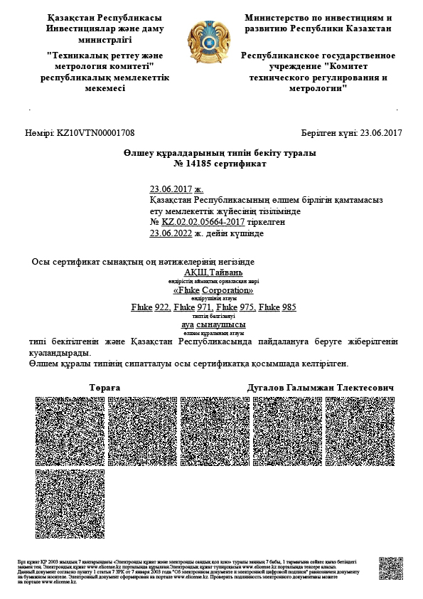 ТОО «ЛинкМастер Казахстан» официальный дистрибьютор фирмы Fluke Corporation, США, на территории Республики Казахстан, рад сообщить о получении сертификатов утверждения типа СИ РК на приборы:
