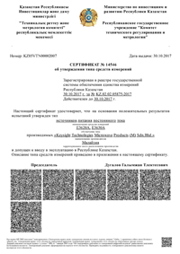 ТОО "ЛинкМастер Казахстан" получил сертификат утверждения типа СИ