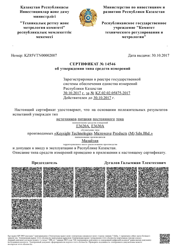 ТОО «ЛинкМастер Казахстан» официальный дистрибьютор фирмы «Keysight Technologies Microwave Products (M) Sdn.Bhd.», Малайзия, на территории Республики Казахстан, рад сообщить о получении сертификата утверждения типа СИ РК на приборы: