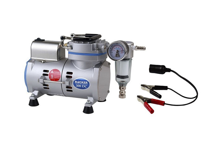 Насосы серии Rocker оснащены фильтрующим патрубком на входе воздуха для фильтрации частиц и влаги для продления срока службы насоса.