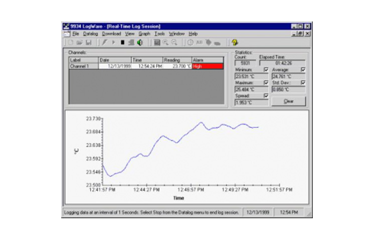 Программное обеспечение LogWare предназначено для получения температурных данных. Укажите условия для верхнего и нижнего пределов тревоги, запрограммируйте отложенное время запуска, сохраните журнал данных на фиксированное количество показаний или период времени, задайте интервал получения данных от 1 секунды до 24 часов, и пусть программа считывает данные с устройства индикации, пока вы занимаетесь другими делами.