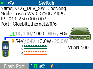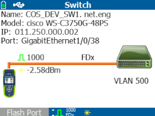 LinkRunner AT использует протоколы IEEE Link Layer Discovery Protocol (LLDP), а также Cisco и Extreme Discovery Protocols (CDP и EDP) для отображения VLAN, а также модели, слота и порта ближайшего коммутатора.
