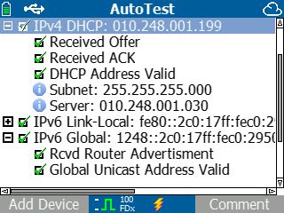 Автотест выполняет необходимые проверки подключения за считанные секунды.