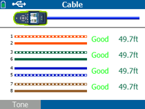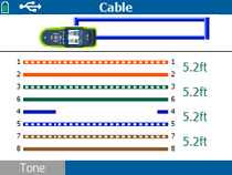 Длина кабеля и схема разводки Проверяет коммутационные кабеля, используя встроенный порт схемы разводки кабелей, включая контактные соединения, или проложенные провода на длину, замыкания, разрывы или расщепления пар.