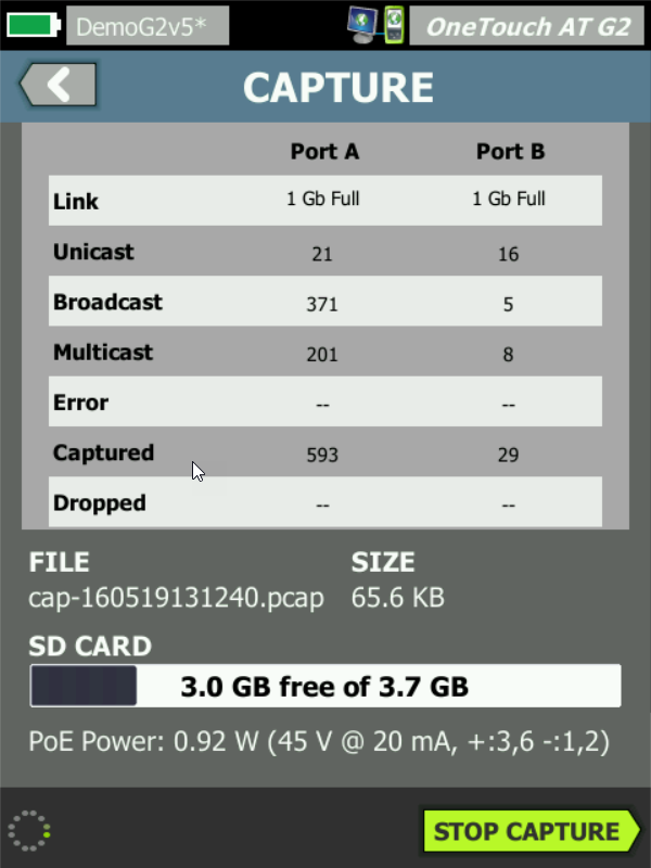 Будьте готовы к широкому спектру сценариев поиска и устранения неисправностей с помощью портативного решения OneTouch AT G2 Network Assistant. Тестер включает в себя двойные порты для тестирования медных и оптоволоконных линий, чтобы облегчить поиск и устранение неисправностей витой пары 10/100/1000 Мбит/с и оптоволокна 100/1000 Мбит/с Ethernet-сетей. Двойные порты упрощают захват пакетов с последовательным подключением и мониторинг служб VoIP, позволяя работать без зеркальных портов и ответвителей. Для поиска и устранения неисправностей Wi-Fi сетей тестер OneTouch AT G2 имеет встроенное двухдиапазонное Wi-Fi радио стандарта 802.11ac с антенной 3 x 3. При подключении к проводной и Wi-Fi сетям тестер отображает результаты испытаний бок о бок на одной странице, чтобы помочь изолировать домен проблемы.