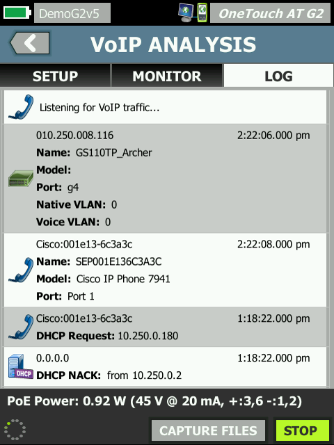 - Поддержка VoIP: модуль G2 позволяет устранять неполадки с VoIP на настольных компьютерах, использующих протоколы SIP/SCCP, в режиме реального времени при помощи мониторинга, регистрации и оценки через последовательное подключение к вызову