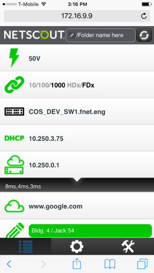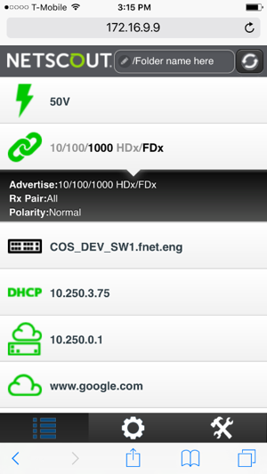 Результаты, полученные сетевым тестером LinkSprinter, могут быть доступны через браузер любого мобильного устройства с помощью встроенной точки доступа к Wi-Fi.