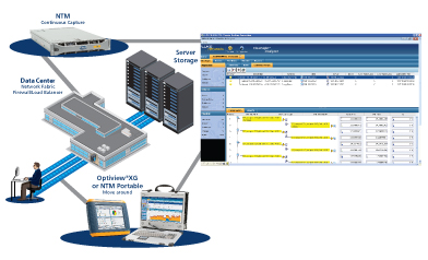 Автоматический многосегментный анализ поддерживает совместный захват, получение и анализ пакетов сети из нескольких OptiView XG и NTM, что в 5 или более раз уменьшает затрачиваемое время, необходимое для анализа сложных проблем приложений, проходящим по нескольким сегментам сети.