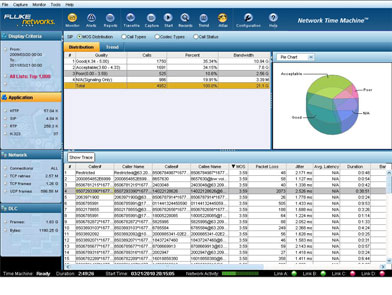 - Трафик VoIP, включающий различные пути сигнала для потоков сигнала и голоса, автоматически коррелируется и отображается в виде многосегментного графика, который поможет быстро решить проблемы отброшенных пакетов, задержки сети или соединений.