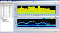 Спектральная плотность — обеспечивает долгосрочное представление сети, отображая информацию в реальном времени о часто встречающихся сигналах во время текущей сессии захвата. Это полезно для идентификации редких передатчиков.