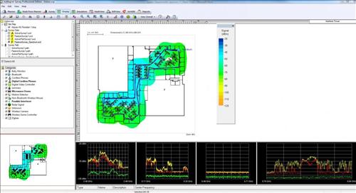 - карте интенсивности мощности / расположения источников помех, не относящихся к WLAN, или устройств, обнаруженных во время опроса участка.