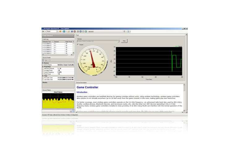 AirMagnet Spectrum XT offers real-time detection and identification of a number of non-WLAN sources that interfere and lower the perfor¬mance of WLAN networks. Обширный список устройств или источников включает устройства Bluetooth, цифровые и аналоговые беспроводные телефоны, обычные и микроволновые печи с инвертором, беспроводные игровые контроллеры, цифровые видеоконвертеры, радионяни, глушители радиочастот, радары, датчики движения, устройства zigbee и т.д.