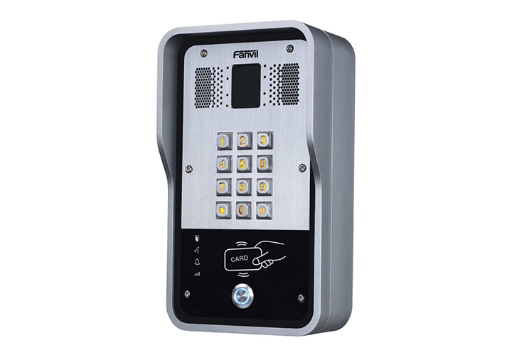 Fanvil i31 - SIP домофон с двумя сверхчувствительными микрофонами с функцией эхо- и шумоподавления. Домофон оснащен одной кнопкой вызова и клавиатурой, а контроль дверей осуществляется не только с помощью голосового вызова и кода, но и с помощью RFID карт. Устройство имеет громкий динамик, который прекрасно подойдет для работы даже в очень шумных пространствах.