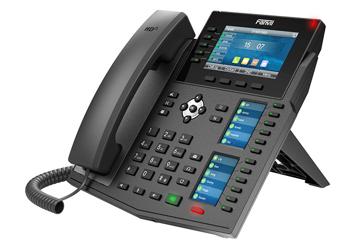 VoIP-телефон Fanvil X6U идеально подходит для установки на стойке регистрации и везде, где необходим контроль, благодаря 60 программируемым клавишам, большому цветному дисплею, который также обеспечивает декодирование видео для отображения с совместимой IP-видеокамеры или даже IP-видеодомофона.