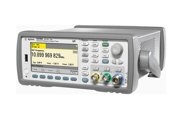 Двухканальный универсальный частотомер/таймер Agilent 53230A с диапазоном частот 350 МГц обеспечивает все необходимые возможности по измерению частоты и временных интервалов, а также непрерывные измерения и измерения без интервалов для выполнения базового анализа в модуляционной области. С прибором может быть приобретена программная опция для измерения параметров пакетных сигналов. Для измерения частоты в диапазоне до 6 ГГц или до 15 ГГц частотомер может быть оснащен дополнительным СВЧ каналом.