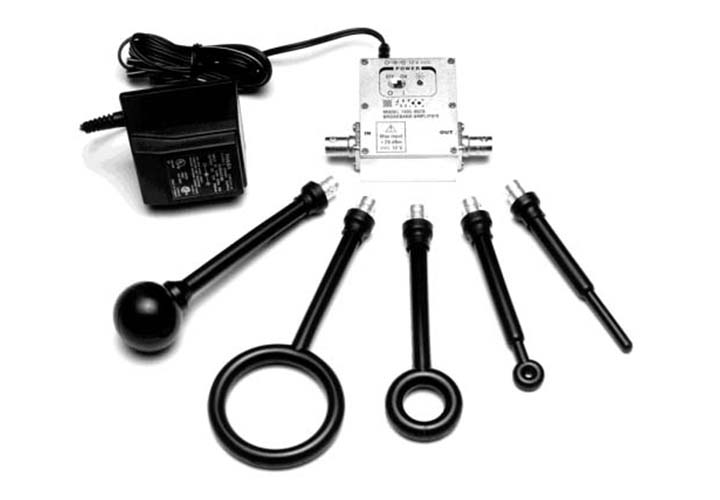 Комплект пассивных зондов для ближнего E и H поля, Диагностическое средство для определения местоположения и определения характеристик источников излучения E и H-поля. Состоит из трех петлевых пробников, одной заглушки и одного шарикового зонда, удлинительной рукоятки, дополнительного предварительного усилителя, футляра и инструкции по эксплуатации. Ручка каждого зонда заканчивается BNC разъемом. Зонды предназначены для использования с устройством анализа сигналов, таким как осциллограф или анализатор спектра.