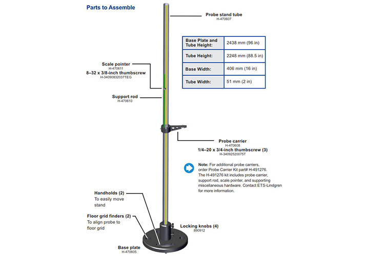 Штатив предназначен для точного и повторяемого позиционирования зонда при выполнении калибровки однородности поля в соответствии с 61000-4-3 и 61000-4-21, других стандартов EMC и военных стандартов.