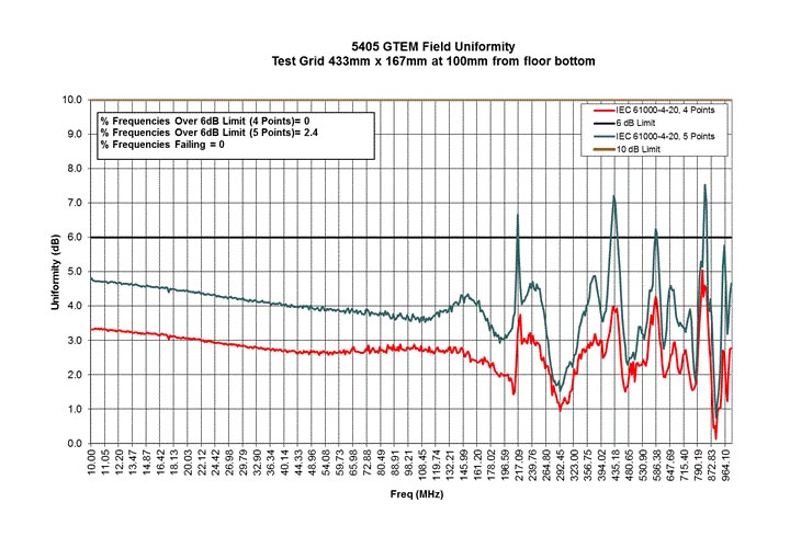 Испытательная камера GTEM 5405 (Gigahertz Transverse Electro-Magnetic) обеспечивает оптимальные условия для измерения помехоэмиссии или помехоустойчивости оборудования средних и больших габаритов. Точные измерения проходят значительно быстрее чем в любой другой камере, в том числе безэховой камере.