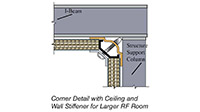 В основе экранирования лежат размерно-стабильные панели с высокой плотностью частиц и/или фанеры толщиной 1,9 см (соответствуют спецификациям ANSI A208.1), ламинированные с обеих сторон листовой сталью 0,321 мм. Стальной покрытие обеспечивает лучшее ослабление магнитных и электрических полей и плоских волн. Каждая секция панели обеспечивает превосходную устойчивость к деформации, в том числе вызванной влагой, и обеспечивает прочность всей конструкции.