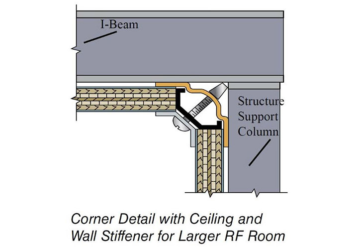 Для обеспечения равномерного и постоянного контакта с сопряженными поверхностями экранированной панели соединяются с помощью зажимной системы "hat & flat" 3,175 мм и зажимной системы "cove". Чтобы противостоять коррозии зажимные секции оцинкованы и соединены между собой самоцентрирующимися, оцинкованными, крепежными элементами расположенными в центре зажимных секций, чтобы обеспечить надежный экран. Углы экранированного корпуса защищены точными, трехгранными, монолитными секциями торцевых крышек.