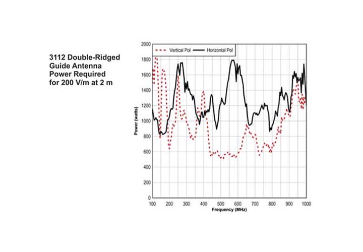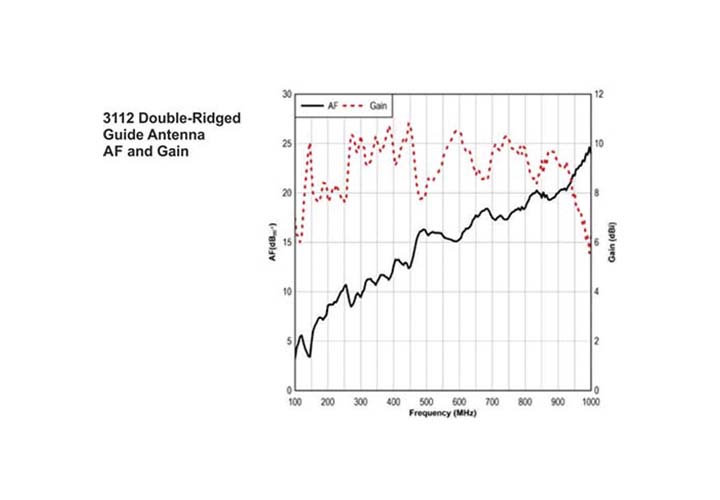 Линейно поляризованная рупорная двухсекционная широкополосная антенна, рабочий диапазон частот от 100 МГц до 1,0 ГГц). Высокий коэффициент усиления, отличные характеристики КСВ на всем рабочем частотном диапазоне. Оптимальна для генерации электро-магнитных полей при низкой потребляемой мощности. Части антенны выполнены из коррозионностойкого алюминиевого сплава.