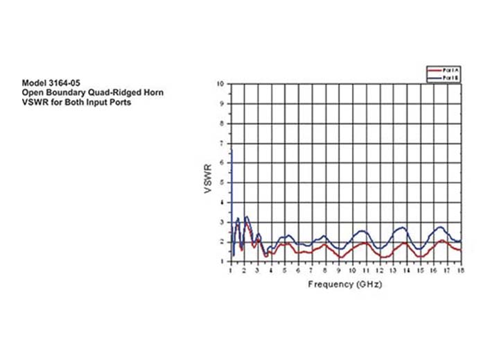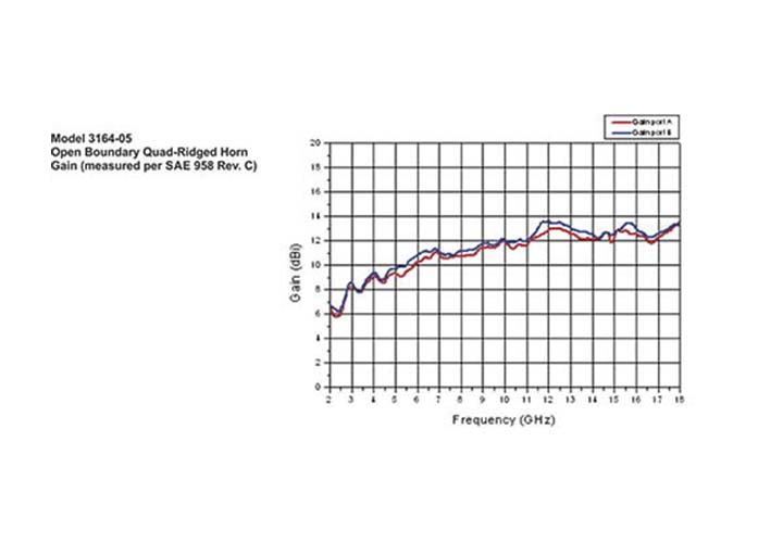 4-х гребневый рупор с открытым излучателем, широкий рабочий диапазон частот 2 ГГц – 18 ГГц. Сочетание высокой производительности и компактного дизайна. Постоянный коэффициент усиления на верхних частотах 2/3 диапазона. Ортогонально расположенные гребни антенны позволяют проводить круговые и линейные поляризационные измерения по всему рабочему диапазону. Крепление позволяет устанавливать антенну на штативе, возможен монтаж на стене.